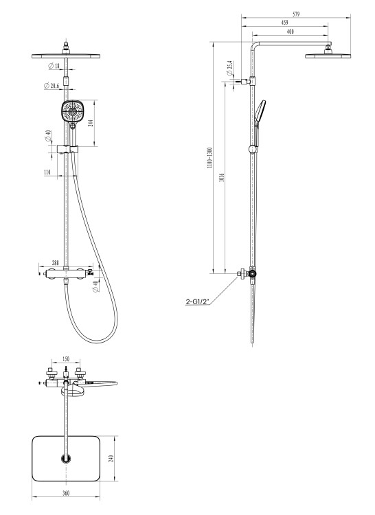 • Размер верхнего душа,мм 360*240