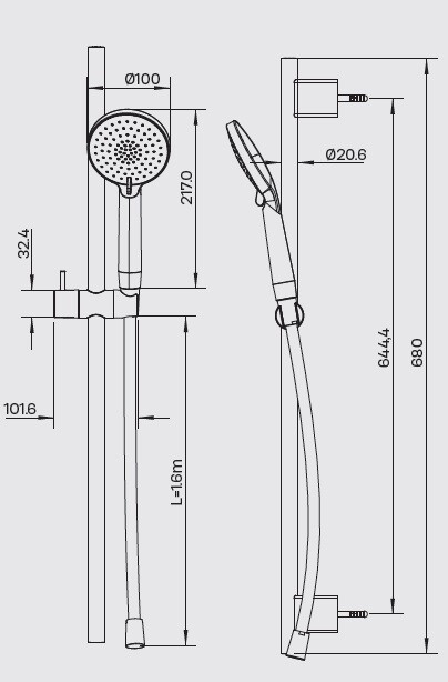 • Размер душевого диска, мм 100