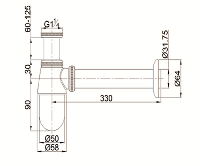 • Тип сифона бутылочный
