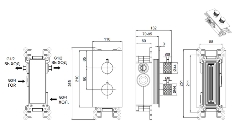 • Монтаж настенный встраиваемый