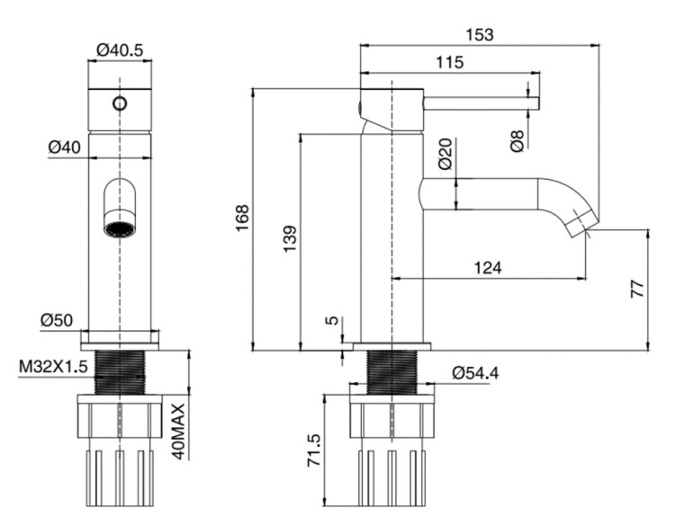 • Вынос излива, мм 124