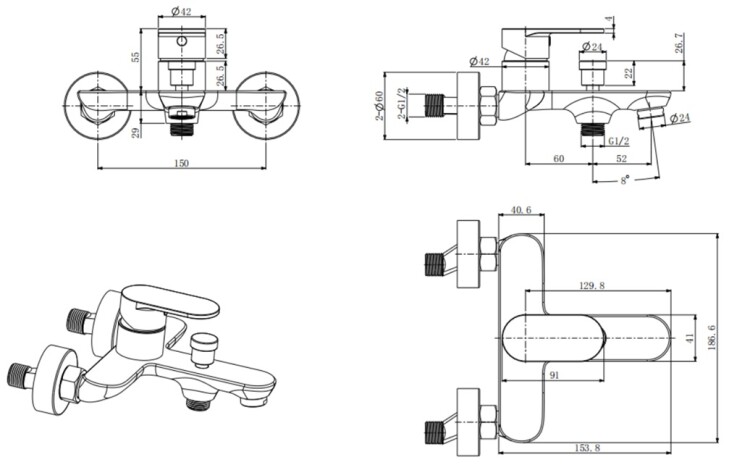 • Тип излива неподвижный