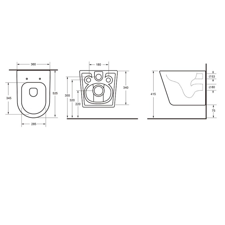 • Вид унитаза безободковый (с открытым смывным краем)