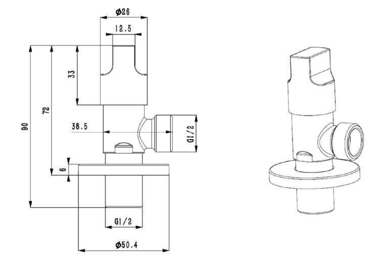 Вентиль запорный угловой 1/2"